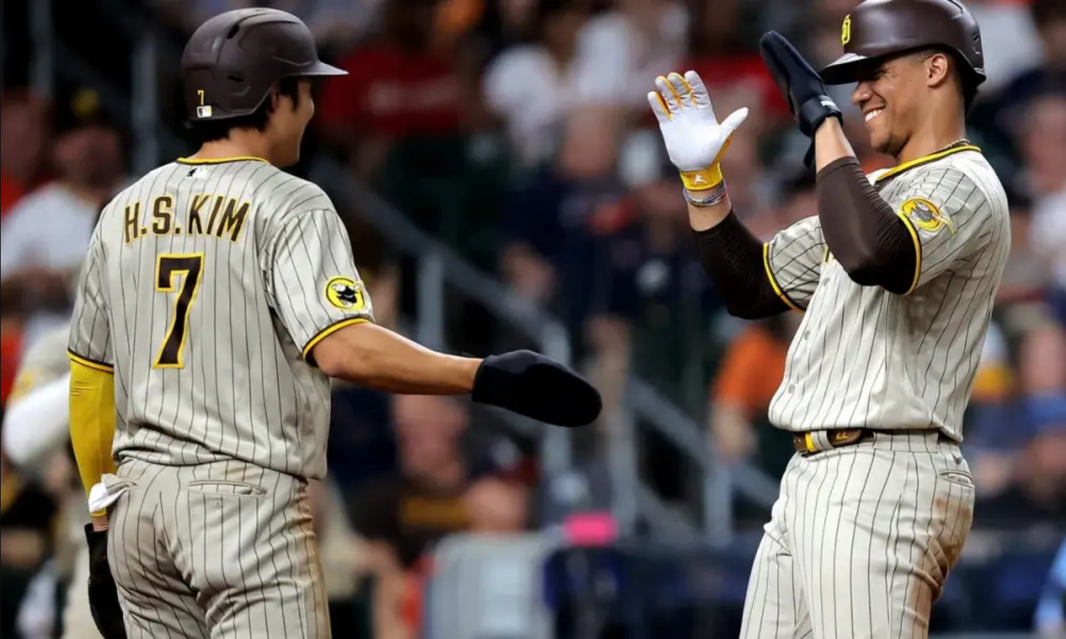 경기 중 김하성의 주요 순간은 3회였습니다. 이 때 그는 상대 투수 J.P. 프랜스의 낮은 스위퍼를 밀어치는 안타를 칩니다. 초기 판정은 아웃으로 내려졌지만, 비디오 판독 결과 타구가 땅에 먼저 닿았다는 판정으로 안타로 수정되었습니다.