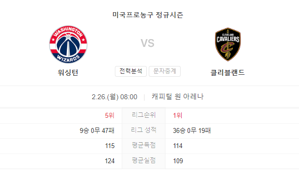 클리블랜드 캐벌리어스는 원정 경기임에도 불구하고 크게 승리할 것으로 예상됩니다. 워싱턴 위저즈의 최근 경기력을 고려할 때, 클리블랜드는 스프레드를 커버하며 승리할 것으로 보입니다. 이 경기는 총 득점이 232.5점을 넘을 것으로 예상되며, 클리블랜드의 공격이 주도할 것으로 보입니다.