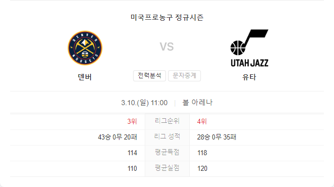 덴버는 현재 서부 컨퍼런스 3위에 올라 있으며, 43승 20패의 성적을 기록 중입니다. 최근 8경기에서 7승 1패를 기록하며 좋은 분위기를 이어가고 있습니다. 특히, 서부 컨퍼런스 1위와의 격차가 크지 않아 리그 선두를 노리며 모티베이션을 높이고 있습니다.