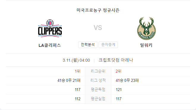 이번 경기는 매우 치열할 것으로 예상됩니다. LA 클리퍼스는 최근 좋은 폼을 보이고 있으며, 홈에서의 강력한 모습을 보일 것으로 기대됩니다. 반면, 밀워키 벅스는 최근 부진한 모습을 보였지만, 리그 최고 수준의 공격력을 바탕으로 반전을 꾀할 것입니다.