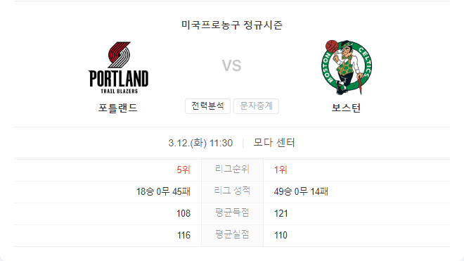 포틀랜드 트레일블레이저스가 보스턴 셀틱스와 같은 강팀을 상대로 좋은 성적을 내기는 어렵습니다. 상대가 그들을 과소평가하지 않는 한, 경기 후반까지 경쟁력을 유지하기 어려울 것입니다.