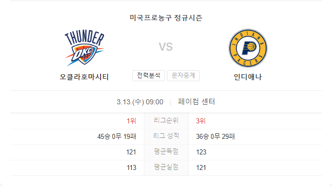 오클라호마시티 썬더는 현재 서부 컨퍼런스 상위권을 유지하고 있으며, 이번 경기에서도 그들의 우수한 폼을 이어갈 것으로 예상됩니다.