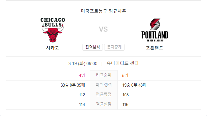 포틀랜드와 시카고의 이번 매치업에서는 시카고 불스가 우위를 점할 것으로 예상됩니다. 특히, 포틀랜드는 주요 선수들의 부상으로 인해 전력이 약화된 상태이며, 시카고는 최근 좋은 모습을 보이고 있습니다.