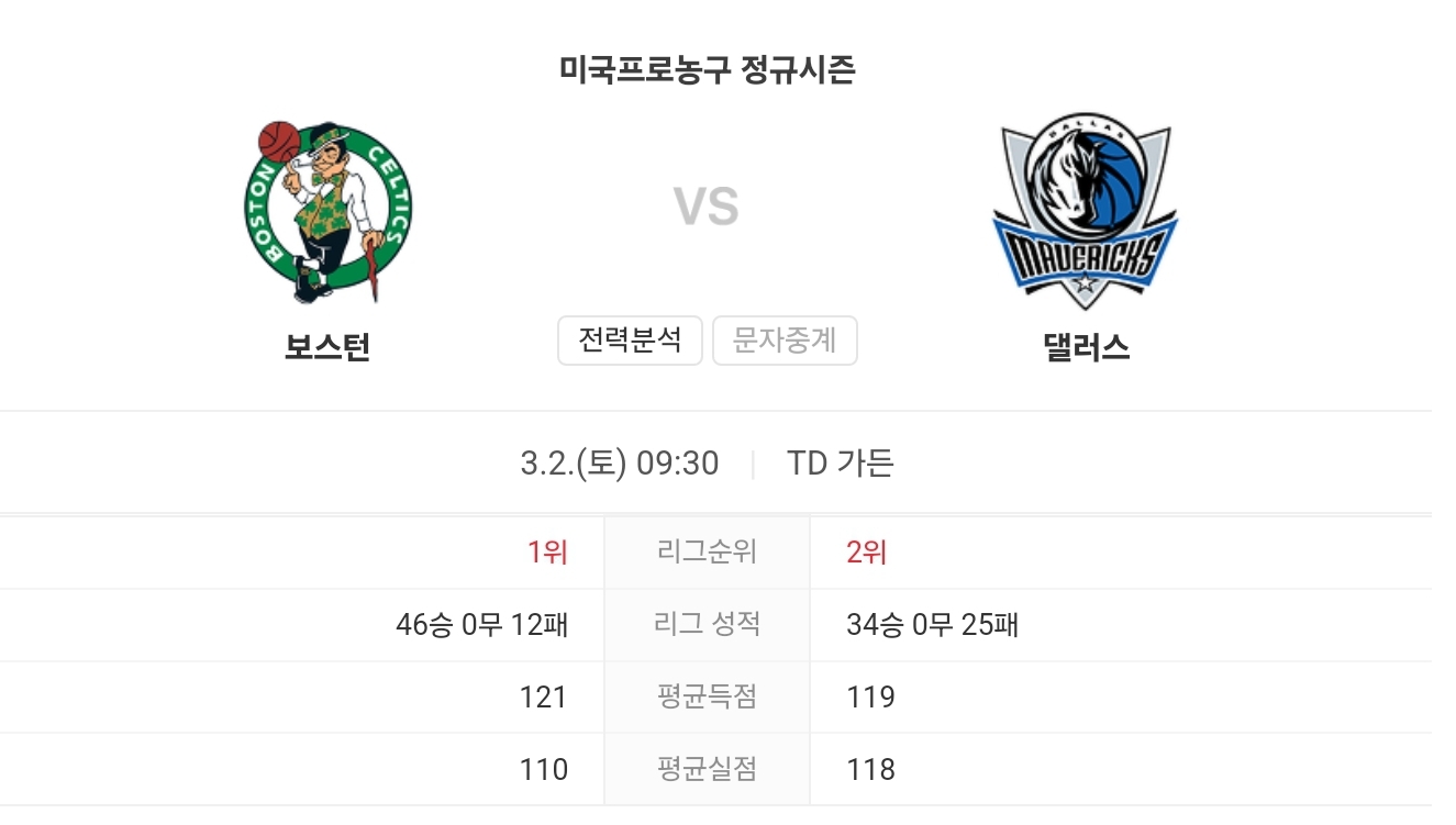 이번 경기는 서로 다른 스타일의 두 팀이 맞붙는 것으로, 보스턴 셀틱스는 더 공격적이고 속도감 있는 달라스 매버릭스의 플레이를 어떻게 통제할지가 관건이 될 것입니다.