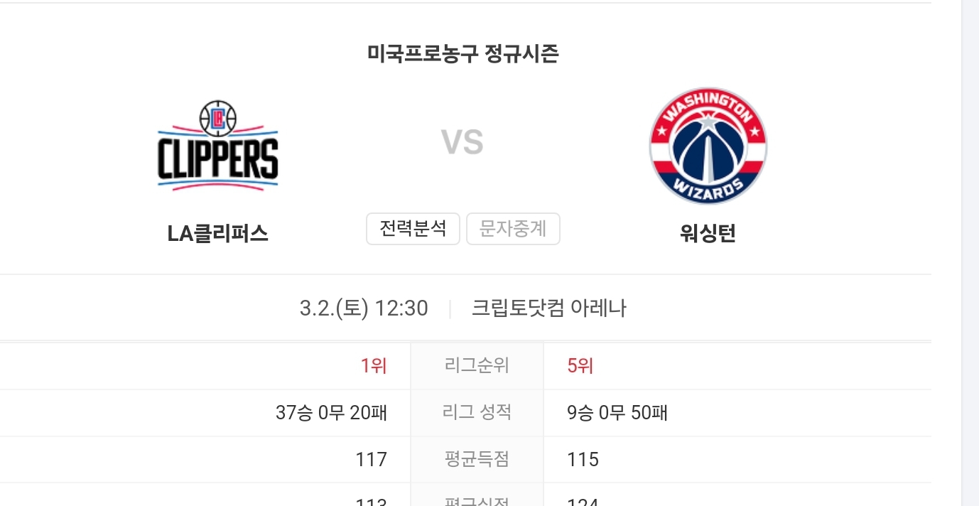 카와이 레너드와 제임스 하든은 팀을 이끌며 뛰어난 활약을 보이고 있으며, 팀은 3점 슛 성공률에서 리그 3위를 기록하는 등 공격에서 매우 효율적입니다. 특히, 클리퍼스는 워싱턴 위저즈를 상대로 최근 5경기에서 4승 1패를 기록하며 우위를 점하고 있어, 이번 경기에서도 승리를 기대하고 있습니다.