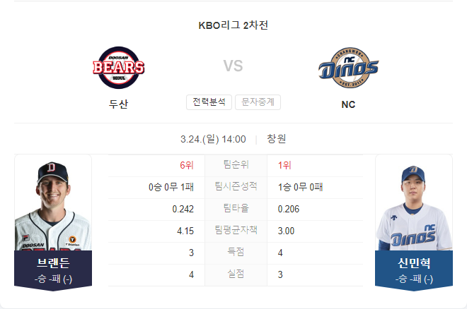 이번 경기는 두산 베어스와 NC 다이노스 간의 치열한 대결이 예상됩니다. 특히, 두산의 선발 투수 브랜든과 NC의 중심타선 간의 맞대결에 관심이 집중됩니다. 브랜든은 커브, 커터, 슬라이더, 체인지업 등 다양한 구질의 원활한 제구력을 바탕으로 NC 타선을 제압할 가능성이 높아 보입니다.