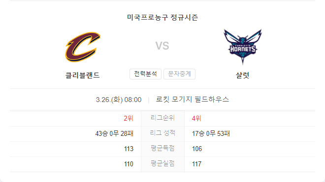 클리블랜드 캐벌리어스는 홈에서 강한 모습을 보이고 있으며, 특히 수비에서의 강점을 바탕으로 샬럿 호넷츠를 상대로 유리한 입장을 점할 것으로 예상됩니다.