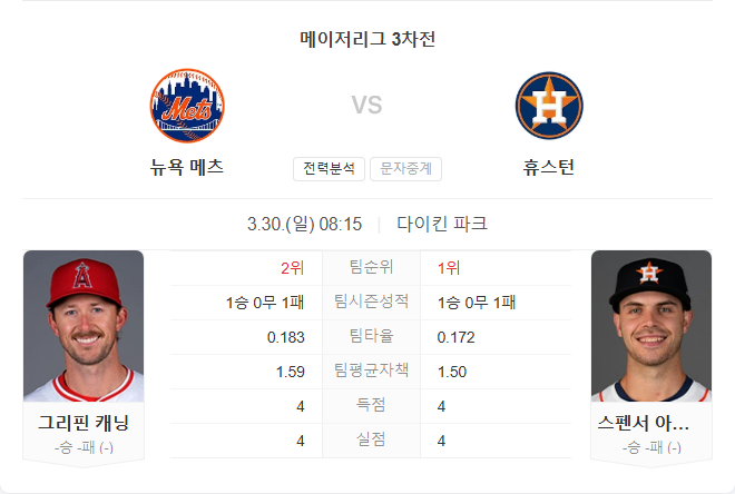 양 팀 모두 공격보다는 마운드에 강점이 있으며, 시리즈 두 경기 모두 3-1이라는 동일한 스코어로 승부가 갈렸습니다. 휴스턴은 선발 아리게티가 다이킨 파크에서 경험이 있으며, 불펜 역시 탄탄한 모습을 보이고 있습니다. 반면 메츠는 캐닝의 휴스턴전 극복 여부가 변수이며, 타선은 후안 소토의 활약에 기대는 비중이 큽니다.