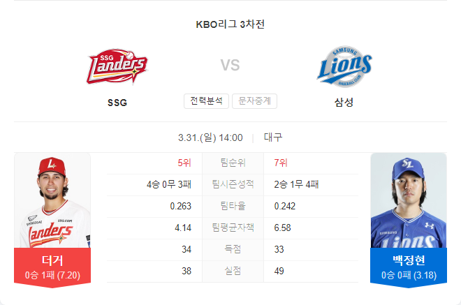 또한, 삼성은 불펜에서 최성훈, 임창민, 최하늘, 이승민 등 우수한 불펜 자원을 보유하고 있어, 경기 후반까지 안정적으로 리드를 지켜낼 수 있을 것으로 예상된다.