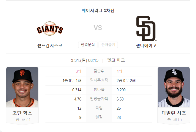 이번 NL 웨스트 라이벌 대결에서는 양 팀 모두 강력한 타선을 보유하고 있으나, 투수진에서의 차이가 승부의 결정적 요소가 될 것으로 예상된다. 샌디에이고는 시즈의 강력한 탈삼진 능력을 바탕으로 자이언츠의 타선을 제압할 수 있을 것으로 기대되며, 타티스 주니어와 마차도가 이끄는 타선도 충분히 득점을 지원할 수 있을 것이다.