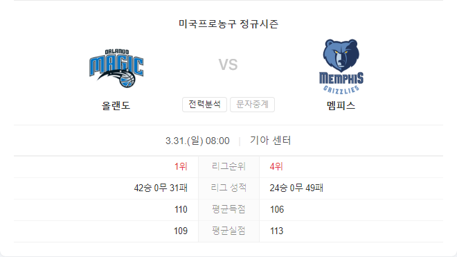 다음 경기에서 멤피스 그리즐리스는 경쟁력을 유지하기 위해 수비에서 최선을 다해야 합니다. 오직 이런 방식으로만 그들은 올랜도 매직과 같이 매우 높은 품질의 상대를 상대로 싸울 수 있습니다.