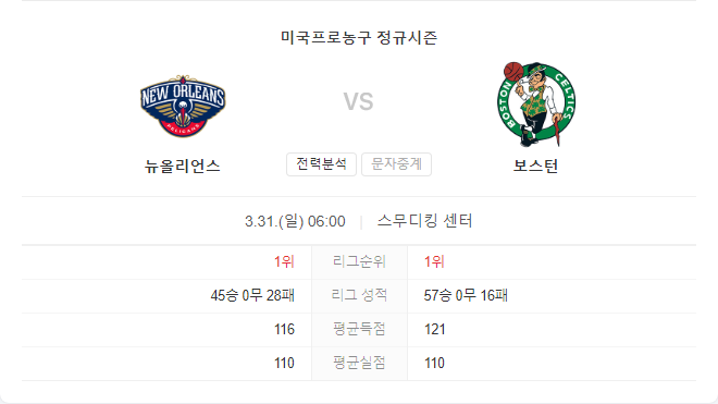 | 3월 29일 NBA 보스턴 셀틱스 VS 애틀란타 호크스 경기 예측 (0) | 2024.03.28 |