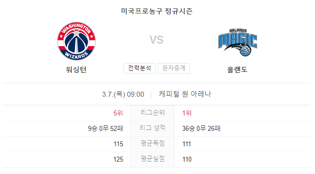 따라서 올랜도 매직이 워싱턴 위저즈를 상대로 좋은 결과를 거둘 것으로 전망됩니다.