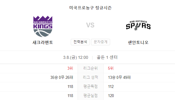 집에서 경기하는 세크라멘토 킹스는 샌안토니오 스퍼스보다 분명히 우위에 있으며, 경기장에서 이를 증명해야 할 것입니다. 킹스는 시즌 말까지 모든 경기가 극히 중요하기 때문에 게스트보다 훨씬 더 동기부여가 될 것입니다. 따라서 우리의 제안은 호스트가 최소 9점 차이로 승리할 것입니다.