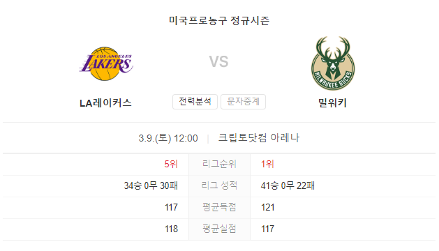 두 팀 모두 매우 빠른 속도의 농구를 강조하며 리그 최상위에 위치하고 있는 중요한 경기입니다. 원정팀인 밀워키 벅스가 여전히 더 높은 품질의 라인업을 가지고 있으며, 현재 홈팀 레이커스보다 더 나은 형태를 보이고 있다고 판단됩니다.