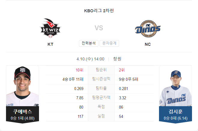 KT 위즈는 윌리엄 쿠에바스를 앞세워 시즌 첫 승에 다시 도전합니다. 최근 KIA와의 경기에서 6이닝 동안 5실점을 기록하며 패배를 당했지만, 과거 NC를 상대로 강한 모습을 보여준 바 있어 이번 경기에서의 반등을 기대하고 있습니다.