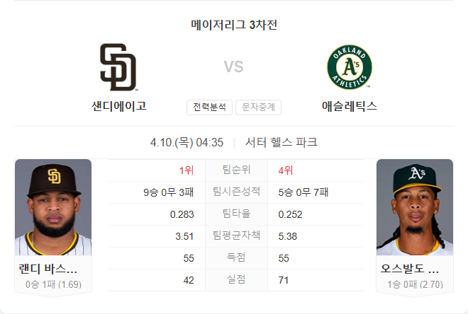 비도의 안정적인 피칭이 이어진다면, 애슬레틱스가 경기 주도권을 잡을 가능성이 큽니다. 파드리스가 초반 리드를 잡더라도, 애슬레틱스의 반격 가능성에 주목할 필요가 있습니다.
