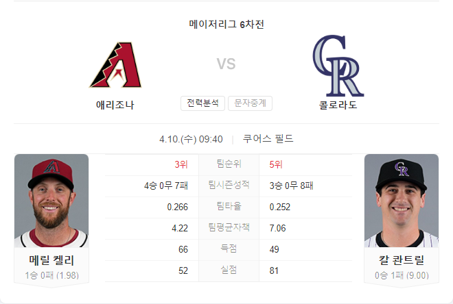 이번 경기에서는 애리조나 다이아몬드백스가 콜로라도 로키스를 상대로 우위를 점할 것으로 예상됩니다. 애리조나는 강력한 타선을 바탕으로 콜로라도의 취약한 투수진을 공략할 수 있는 능력을 보유하고 있으며, 선발 투수 메릴 켈리의 안정적인 피칭이 기대됩니다.