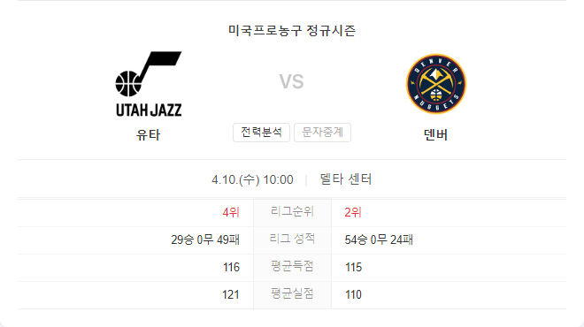 4월 10일 NBA 달라스 매버릭스 VS 샬럿 호넷츠 타카짱의 경기 예측 분석