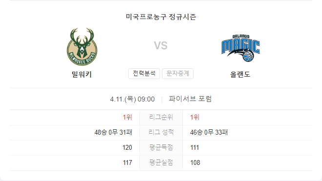 이번 경기는 양 팀 모두 백투백 경기를 치르는 가운데, 올랜도와 밀워키 모두 플레이오프 전망에 있어 중요한 승부가 될 것입니다. 올랜도는 최근 상승세를 이어가며 이번 경기에서도 좋은 모습을 보일 가능성이 높지만, 밀워키는 홈에서의 경기이며, 핵심 선수들이 출전한다면 강력한 모습을 보일 것입니다.