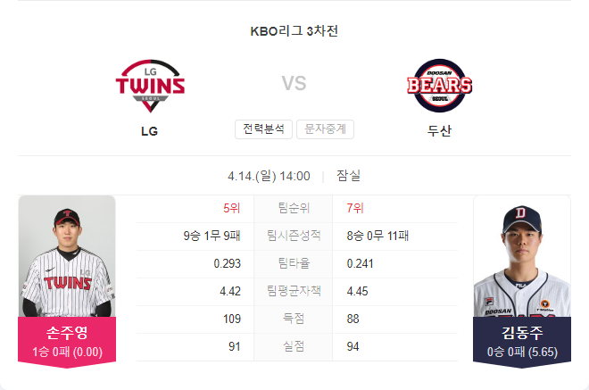 LG 트윈스는 손주영을 선발 투수로 내세우며 두산 베어스와의 중요한 경기에 임합니다. 손주영은 최근 KIA와의 원정 경기에서 5이닝 동안 무실점으로 상대 타선을 제압했으며, 그의 위력적인 투구가 이번 경기에서도 기대됩니다.