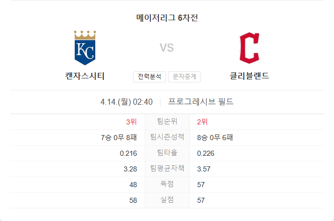 로열스는 타선의 부진과 불안정한 경기 운영으로 어려움을 겪고 있으며, 가디언스는 최근 상승세와 안정적인 투수진을 바탕으로 경기를 주도할 것으로 예상됩니다. 특히 콴과 라미레즈의 활약이 기대되며, 홈경기의 이점을 살릴 수 있을 것으로 보입니다.