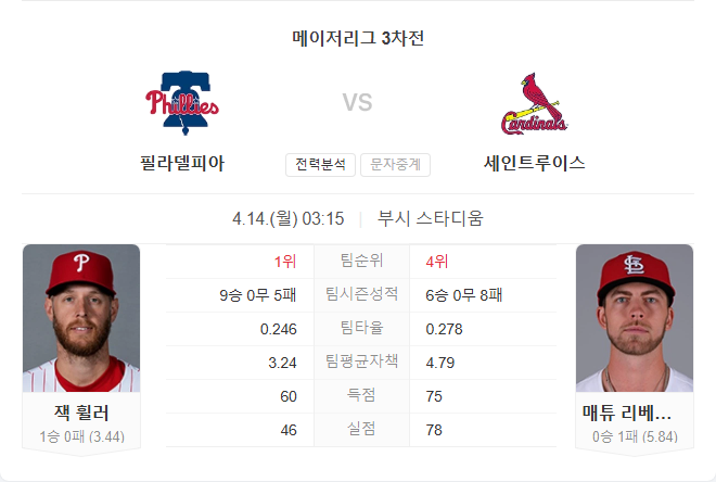 필리스는 휠러의 안정적인 투구와 슈와버, 카스테야노스를 중심으로 한 타선의 활약으로 경기를 주도할 것으로 예상됩니다. 반면, 카디널스는 리베라토어의 부진한 투구와 주요 타자의 부상으로 인해 어려운 경기가 될 것으로 보입니다. 특히, 필리스는 최근 카디널스를 상대로 좋은 성적을 거두고 있어, 이번 경기에서도 우위를 점할 것으로 예상됩니다.