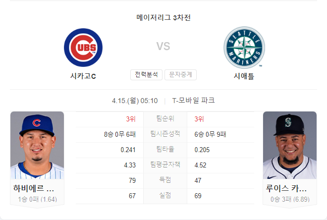 4월 15일 MLB 믈브 캔자스시티 로열스 VS 뉴욕 메츠 타카짱의 경기 예측 분석