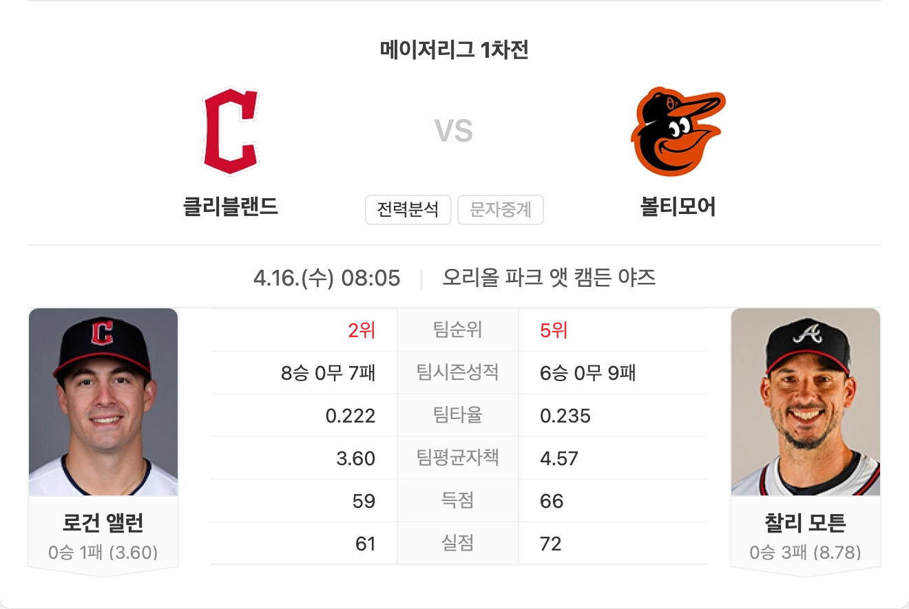 클리블랜드는 최근 상승세를 타고 있지만, 원정 경기와 야간 경기에서의 부진한 성적이 우려됩니다. 반면, 볼티모어는 모튼의 부진에도 불구하고 홈과 야간 경기에서 안정적인 투구를 기대할 수 있습니다. 또한, 최근 타선이 활발한 모습을 보이고 있어, 이번 경기에서는 볼티모어가 우위를 점할 것으로 예상됩니다.
