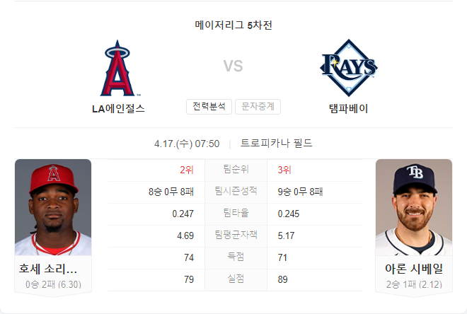 탬파베이 레이스는 최근 안정적인 플레이를 보여주며 좋은 흐름을 이어가고 있습니다. 반면, LA 에인절스는 타선과 투수진에서 일관성이 떨어지며 고전하고 있습니다. 아론 시베일의 안정적인 투구와 탬파베이의 강력한 타선을 고려했을 때, 이번 경기는 탬파베이 레이스가 유리할 것으로 보입니다. 따라서 탬파베이 레이스의 승리를 예상합니다.