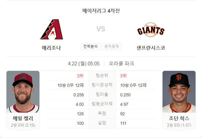 하지만, 애리조나의 강력한 타선과 샌프란시스코의 최근 상승세를 고려했을 때, 이 경기는 양 팀의 타선 또한 중요한 역할을 할 것으로 예상됩니다. 결국, 이 경기는 선발 투수의 퍼포먼스와 불펜의 지원, 그리고 핵심 타자들의 활약에 따라 승패가 갈릴 것으로 보입니다.
