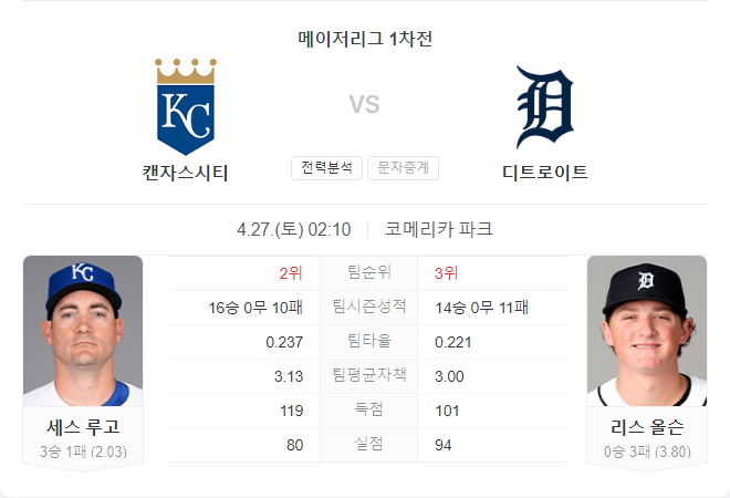 이번 경기에서는 양 팀 모두 중부 지구에서 좋은 성적을 거두고 있기 때문에 치열한 경기가 예상됩니다. 캔자스시티의 세스 루고는 이번 시즌 강력한 투구를 보여주고 있고, 디트로이트의 리스 올슨도 점차 안정감을 찾아가고 있습니다.