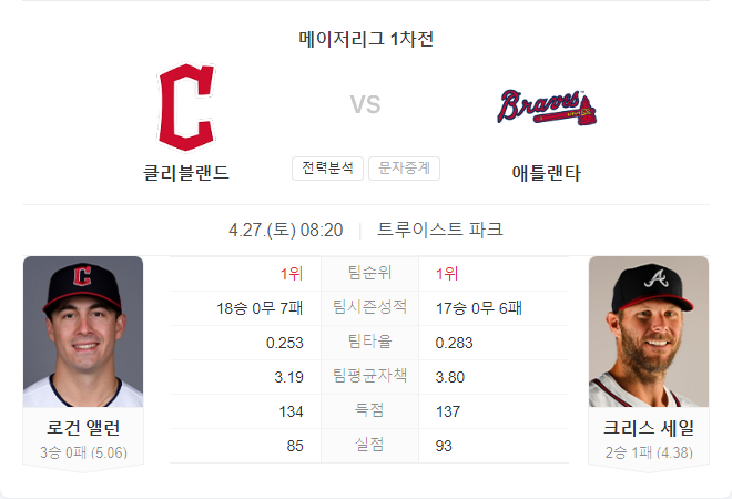 반면, 애틀랜타의 크리스 세일도 안정적이지 못한 피칭을 보여주고 있어, 클리블랜드 역시 점수를 낼 기회가 많을 것입니다. 양 팀 모두 타선이 힘을 발휘할 것으로 보이며, 특히 애틀랜타가 홈 이점을 살려 좋은 성적을 거둘 가능성이 높습니다.