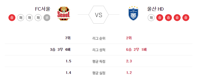 서울 FC는 대한민국 1부 리그에서 6위에 위치해 있으며, 최근 경기에서는 수비적으로 나서며 무실점을 기록하는 등 안정적인 수비력을 보여주었습니다. 특히 팀의 새 감독 김기동은 포항 시절 울산을 잘 괴롭히는 전략을 가지고 있었고, 공격수 일류첸코는 울산을 상대로 매 시즌 득점을 기록하고 있어 울산을 상대로 비교적 유리한 면모를 가지고 있습니다.