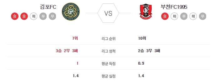 특히 부천은 공격적으로 경기를 운영하면서도 득점에 실패하는 경우가 많아, 김포의 역습 전략에 취약할 수 있습니다. 결장자는 송진규(MF), 서명관(CB)으로, 전체 전력의 약 10%가 감소했습니다.