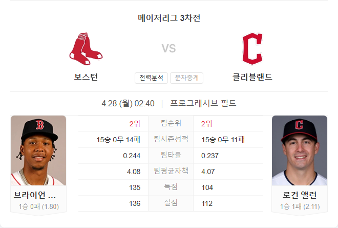 클리블랜드 가디언스는 로건 앨런이 초반 실점을 최소화할 수 있지만, 긴 이닝 소화가 어렵다는 점이 불안 요소입니다. 타선의 힘은 여전히 살아 있으나, 선발 매치업에서 약간의 열세가 예상됩니다.