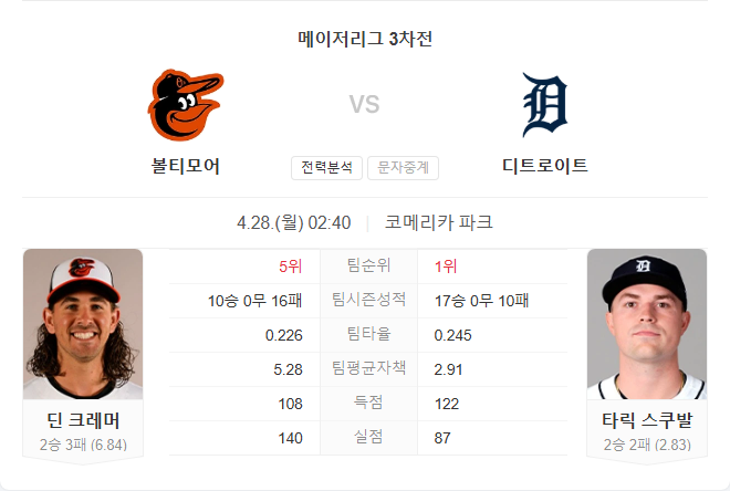 볼티모어 오리올스는 딘 크레이머가 부진을 극복하지 못하고 있으며, 타선의 침묵도 계속되고 있어 이번 경기에서도 고전이 예상됩니다. 특히 홈 강세를 보이는 디트로이트를 상대로 불리한 경기를 펼칠 가능성이 큽니다.