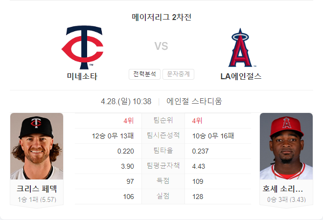 LA 에인절스는 연패를 끊기 위해 호세 소리아노가 시즌 첫 승리를 노립니다. 소리아노는 최근 신시내티 원정에서 6이닝 동안 3실점을 기록했지만, 모든 실점이 비자책점이었을 만큼 수비의 도움을 받지 못했습니다.