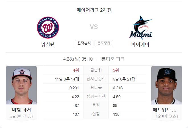 전반적으로 워싱턴의 투수력이 앞서며, 마이애미의 투수진이 흔들릴 가능성이 높아 이번 시리즈에서 워싱턴이 승리할 가능성이 더 높아 보입니다.