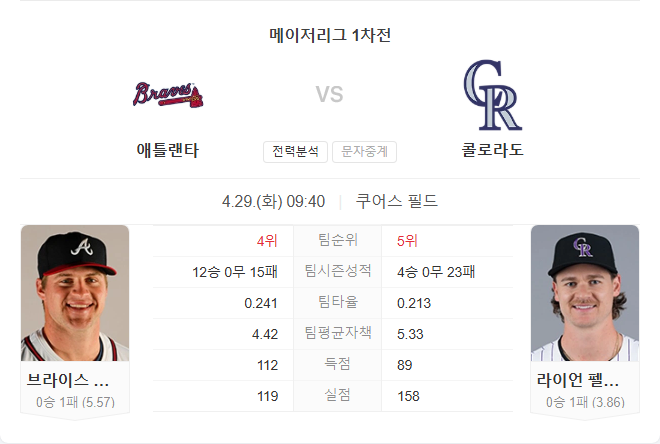 | 4월 29일 MLB 메이저리그 세인트루이스 카디널스 VS 신시내티 레즈 타카짱의 경기 예측 분석 (0) | 2025.04.28 |