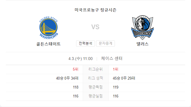 골든스테이트 워리어스는 정규 시즌 말미에 더 좋은 위치를 확보하기 위해 어려운 과제에 직면해 있습니다. 그들의 상대는 루카 돈치치가 이끄는 절정의 폼을 자랑하는 달라스 매버릭스입니다.