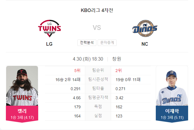 | 4월 30일 KBO 프로야구 삼성 라이온즈 VS 두산 베어스 타카짱의 경기 예측 분석 (0) | 2024.04.30 |