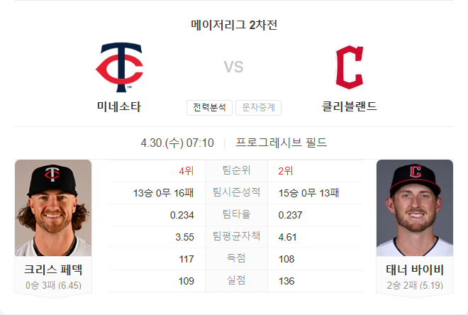 전반적인 흐름과 선발 매치업을 감안할 때, 클리블랜드가 근소한 우위를 점할 것으로 보입니다.