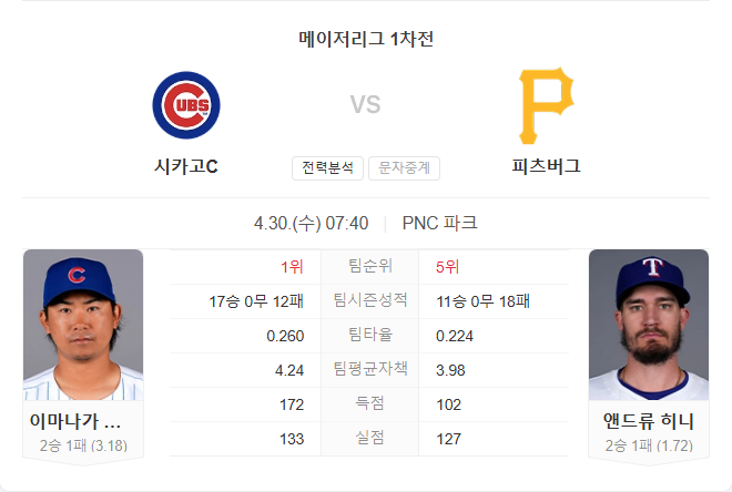 | 4월 30일 MLB 메이저리그 세인트루이스 카디널스 VS 신시내티 레즈 타카짱의 경기 예측 분석 (0) | 2025.04.29 |