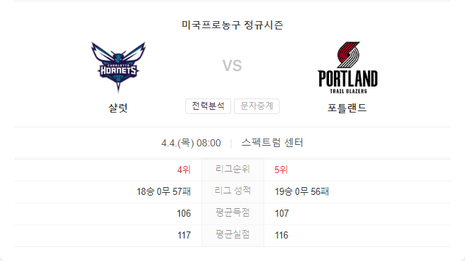 포틀랜드와 샬럿 모두 득점 능력이 하위권에 속하며, 특히 포틀랜드는 여러 주요 선수들이 결장 중입니다. 그러나 샬럿이 최근 조금 더 나은 연속성을 보여주고 있으며, 로스터에 더 많은 유연성이 있기 때문에 홈에서의 경기는 호넷츠가 이길 것으로 예상됩니다.