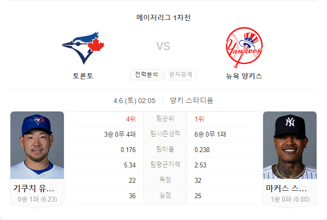 양키스의 홈 개막전은 항상 큰 관심을 받으며, 팀은 최근 몇 년간 홈 개막전에서 좋은 성적을 거두었습니다. 토론토는 반등을 노리고 있지만, 초기 타선의 부진이 걸림돌이 될 수 있습니다. 반면, 양키스는 좋은 분위기 속에서 마커스 스트로먼의 호투를 기대하며 승리를 목표로 하고 있습니다.