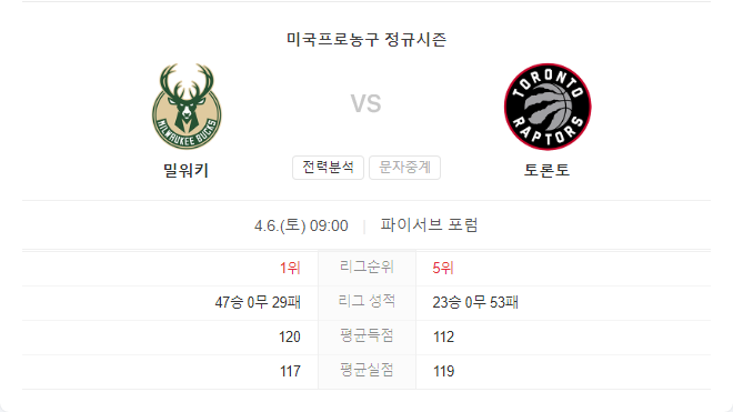 양 팀 모두 최근 몇 경기에서 어려움을 겪고 있으나, 밀워키 벅스는 이번 시즌 강력한 공격력을 보여준 팀입니다. 반면, 토론토 랩터스는 장기간의 연패로 인해 사기가 크게 저하된 상태입니다.