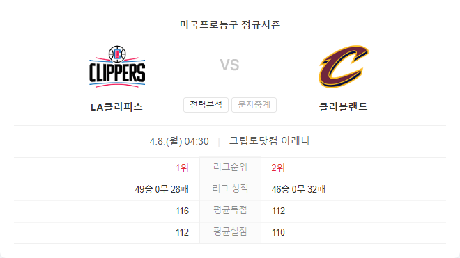 클리블랜드 캐벌리어스는 올 시즌 기대 이상의 성적을 거두고 있으며, 이는 팀의 주요 득점원인 도노반 미첼, 자렛 알렌의 활약 덕분입니다. 클리블랜드 캐벌리어스가 이번 경기에서 승리하기 위해서는 LA 클리퍼스의 강력한 공격을 막아내야 합니다.