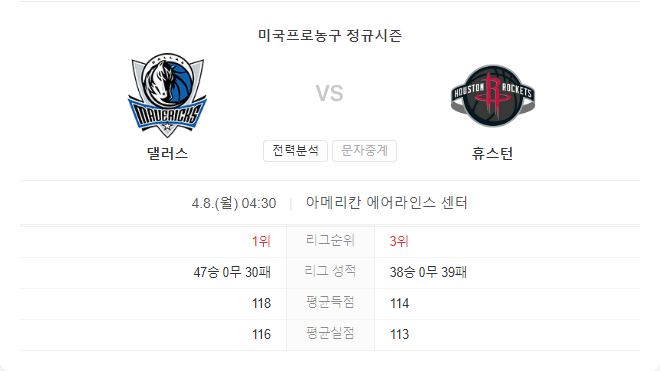 플레이오프 진출을 향한 휴스턴의 희망이 점점 사라지고 있는 반면, 달라스는 상위 6위 안에 들기 위해 안간힘을 쓰고 있습니다. 휴스턴이 최근 부진한 모습을 보이며 연패를 이어가고 있는 상황에서, 달라스는 홈에서 강한 모습을 보이며 연승 흐름을 이어가고 있습니다.