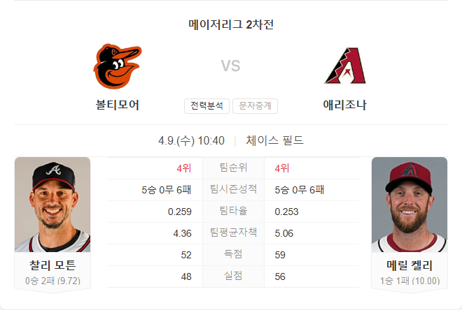 모튼과 켈리 모두 고질적인 피홈런과 볼넷 문제를 안고 있는 만큼 불펜 소모도 커질 수 있습니다. 전반적으로 홈 이점을 안은 애리조나가 경기 후반 뒷심에서 앞설 것으로 보입니다.